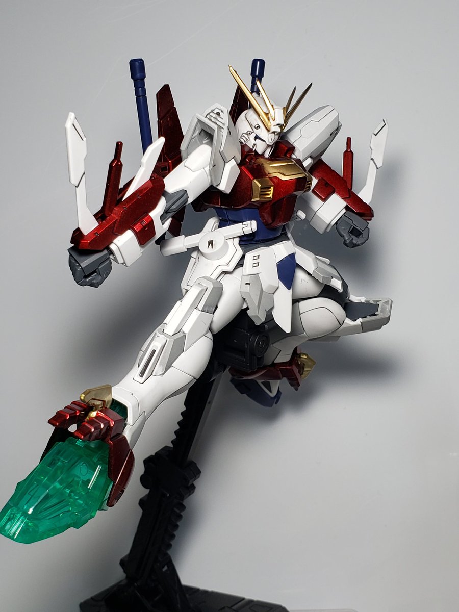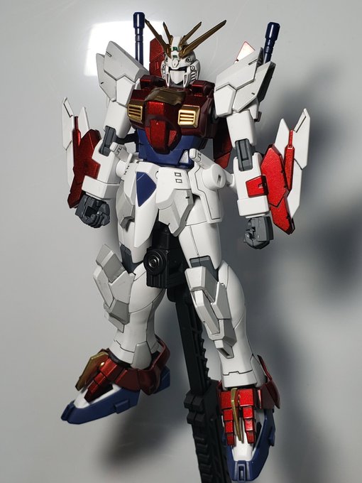 R03バスターガンダムできました 色付きはキャンディ塗装してデカールとちょっとモールド追加してみた #ガンプラ #ガンプラの画像貼るとRTされると聞いて #ガンプラ好きな人と繋がりたい でもちょっとガンダムばっかり作ってて胃もたれしてきたな?