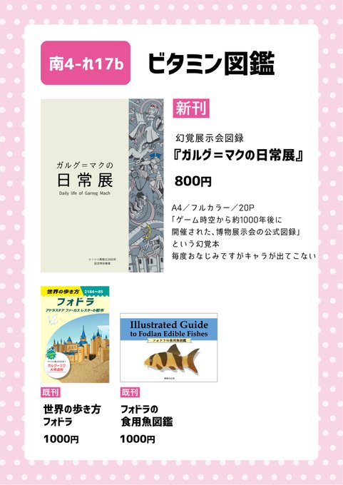 冬コミ #C101 #お品書き ですー。 1日目(12/30 金曜)東2ホール「Y-44a」ビタミン図鑑にて、今年作った風花雪月の幻覚書籍シリーズを持っていきます💪何卒よろしくお願いいたします! WEBカタログ→ webcatalog-free.circle.ms/Circle/16811900