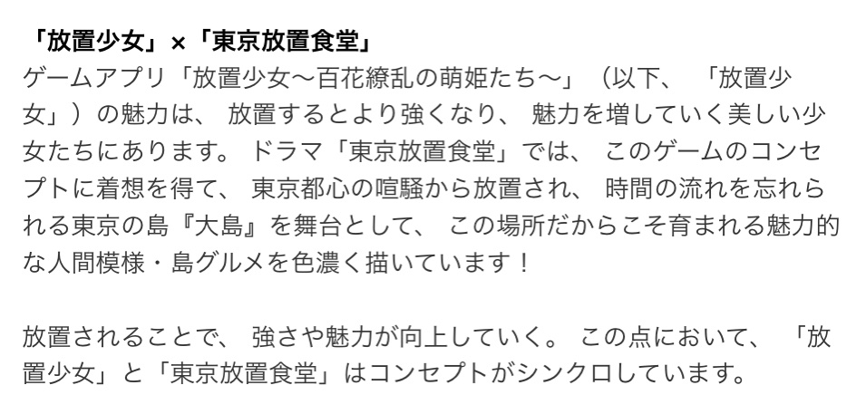 テレ東の「東京放置食堂」、放置少女が原案らしいんだけど、一体どこが何をどうしたらこうなるの!?すごく面白いんだけど、テレ東のドラマのセンスのいいところいっぱい出てる人情ものでとてもいいんだけど、何!?