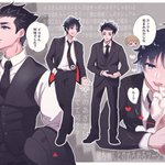生駒隊スーツ姿ありがとう…! イコさんも隠岐もカチッと着てる中ベスト姿の水上の腰の細さが…☺️