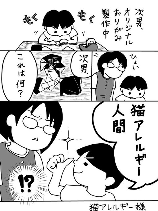 0 3 猫アレルギー人間 ※2枚目が実物の猫アレルギー様です。 #育児漫画 #育児エッセイ #エッセイ漫画 #長男次男 #反応ある人全員好き 21/08/22 17:05