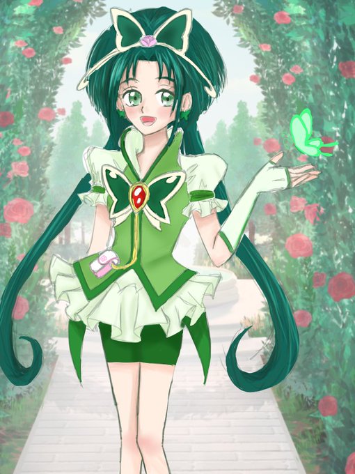 キュアミント描きました🦋🌿🌹 (背景はアイビスペイントから借りました) #プリキュア #precure