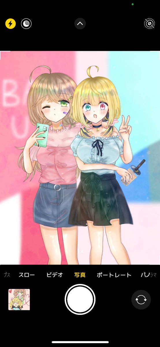 💚📸💙 (フォロワーさんのコテキャちゃんお借りしました❕) #創作 #オリジナルイラスト