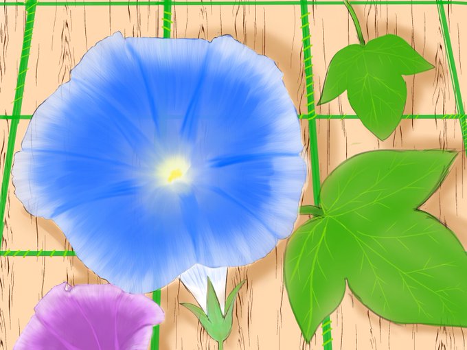 描き始めて20日目 約3時間かかったO(:3 )~ 朝顔です。 影の使い方上手くなったなwwとおもった今日この頃 次は人らしいものが描きたいな🤔 #イラスト #朝顔