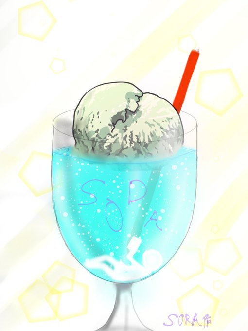 絵を描き始めてから 26日目 ソーダのつもり この中に『4人』超小さな小人(棒人間)がいます。 見つけたらリプください! 答えもリプに書いてます。 #イラスト #ソーダ #小人探し