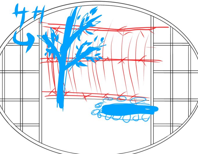 これが……こうだ!! #イラスト ラフ画と完成の温度よwww あと今気づいた、池が無くなっとる