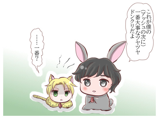 🐰「違うんだ!ノリノリ君はただハロウィンを楽しもうとカボチャを君の枕元に…」 😾「いいからソイツを寄越してもらおうか」(英二以外許さん) 数分フライングですが描き終わったのと寝落ちしそうなので… お題『言い訳』お借りしました #A英ワンドロワンライ