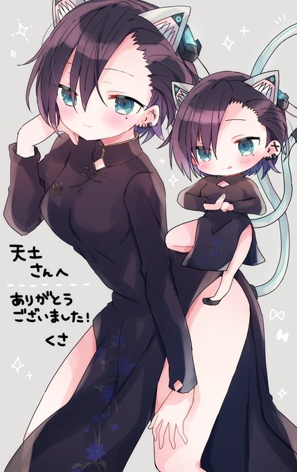 くささんのコミッション「こんにちは、くささんの画風が好きでリクエストを送らせて頂きました。 VRChatというゲームで使っている私のアバターの絵をお願いしたいです、構図等...」 skeb.jp/@tukitukika/wo… #Skeb #Commission @skeb_jpより 納品しました〜〜! かっこよチャイナ服きゃっとさん!