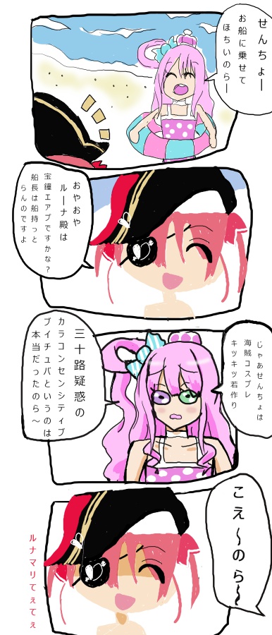 6 24 #ルーナート #マリンのお宝 #4コマリン 海に最近行ってない船長と昼を夜に変える姫の物語。 20/06/27 17:22