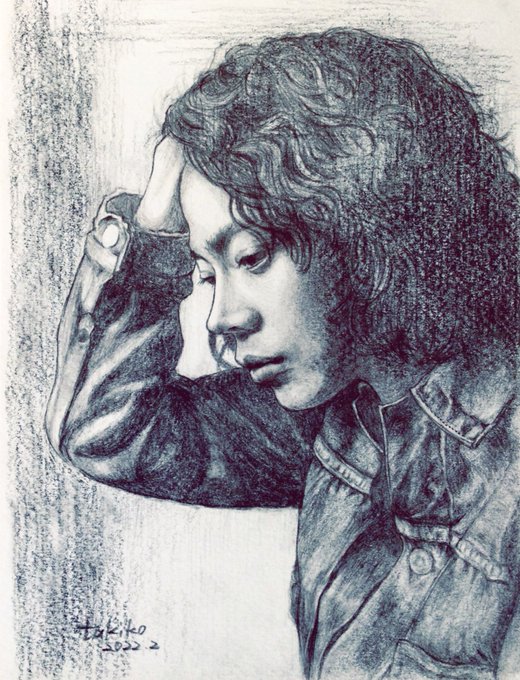 アンティークな感じで描いてみました♥ カラーも挑戦する!(いつか!) #星野源 #鉛筆画 手は真っ黒、肩はゴリゴリだわ(笑)