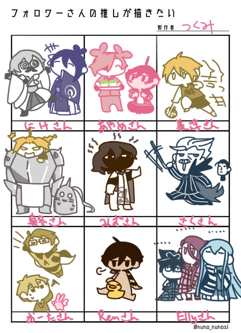 #フォロワーさんの推しが描きたい お待たせしました!!皆さんの推しを描いてみたよ!!とうらぶ以外の作品も多く、描くときとても楽しかったです><そしてここで一番のお気に入りはホムーズでしたwww