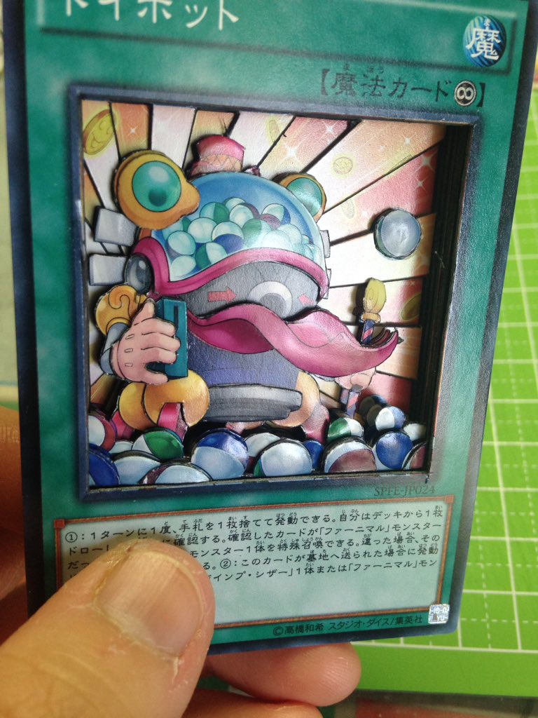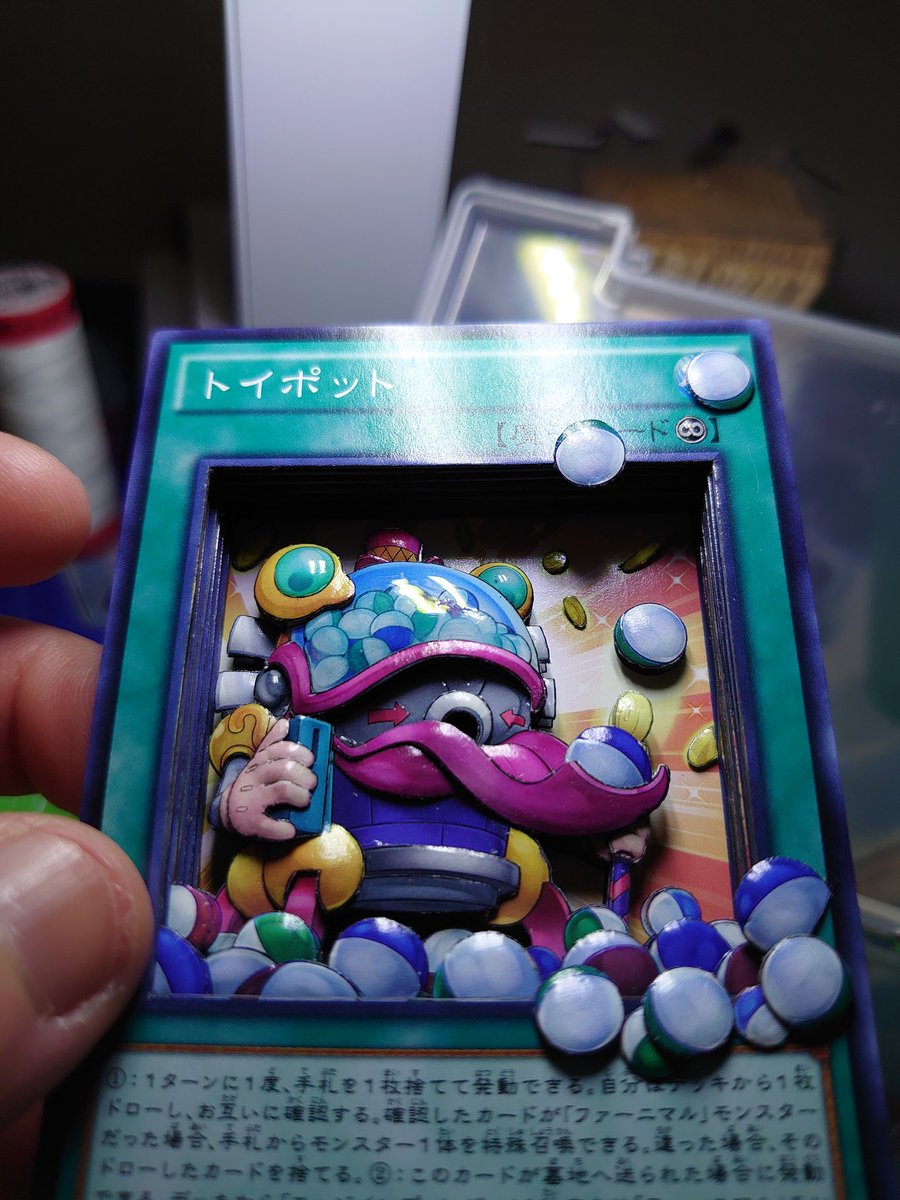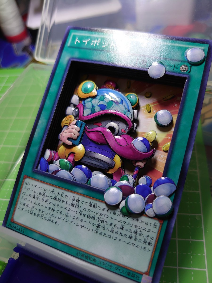 3 12 完成 トイポット(6枚) 背景とカプセルが上手くいったかも(´∇`) そしてそろそろ入れるケースがほしい #遊戯王 #新作シャドーボックス #シャドーボックス 19/01/08 12:42