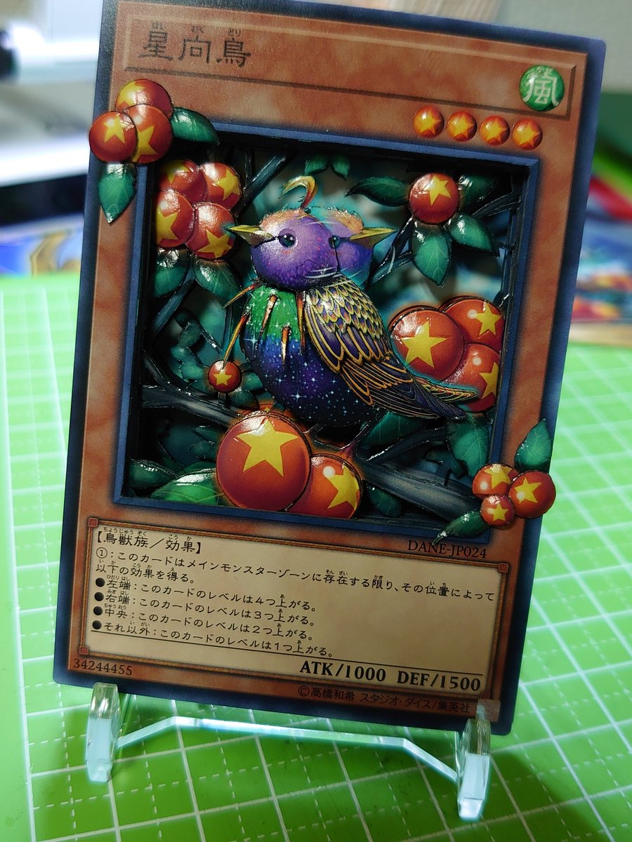 完成_(-ω-`_)⌒)_ 星向鳥(ほしむくどり) 気づいたら振った残像作ってたっていう← 今回は額みたいに2箇所木の実増やしてみました(≧∇≦) #シャドーボックス #遊戯王