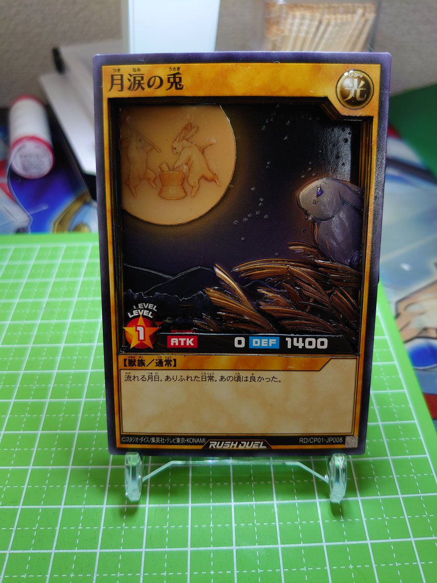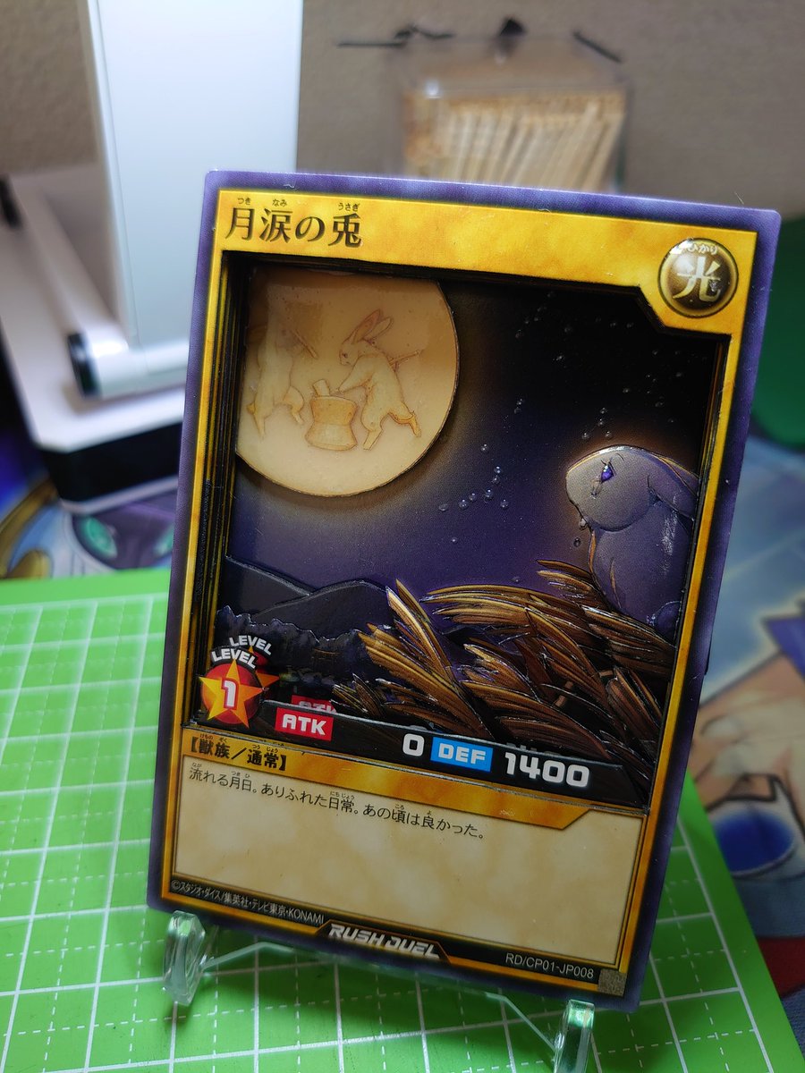 7 20 完成ヽ(・∀・)ノ 月涙の兎 初めてラッシュデュエルのカードで作成(´∇`) 分かりずらいけど月、星、涙の部分が光る仕様に(4枚目) #遊戯王 #ラッシュデュエル #シャドーボックス 20/11/13 10:15