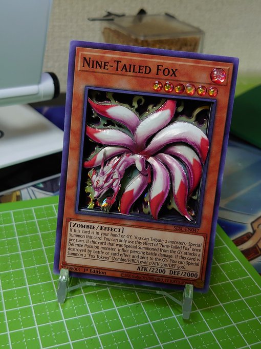 1箇所やらかして上げるかどうか迷いましたが、載せます。 九尾の狐 中の枠パーツを断面処理し忘れて組んでしまったので、お蔵入りにするか迷った(;´Д`) けど尻尾が上手くいった気がする(´∇`) #シャドーボックス #遊戯王