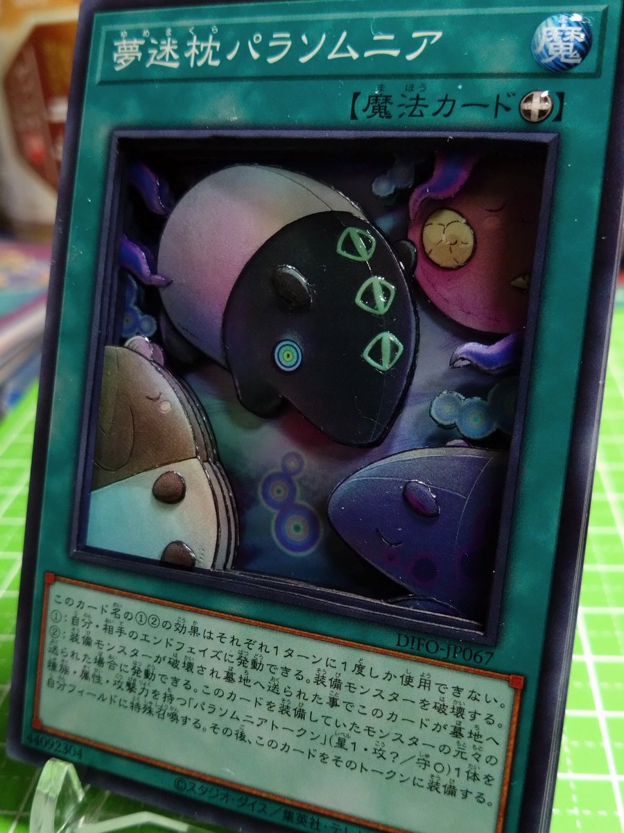 3 13 完成ヾ(*´∀`*)ノ 遊戯王より 夢迷枕パラソムニア シンプルな感じが好き(´∀`*) 写真じゃ見ずらいですが、バクの丸み付けを頑張ってみました。額のマークは蓄光で光るようにしてみました( ´ ▽ ` ) #シャドボツリー #遊戯王 #シャドーボックス 22/12/03 19:43