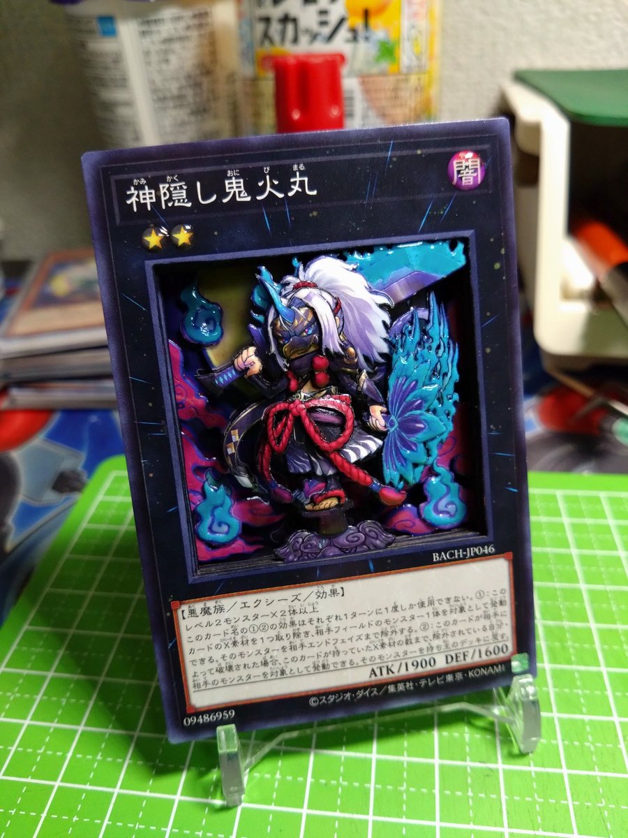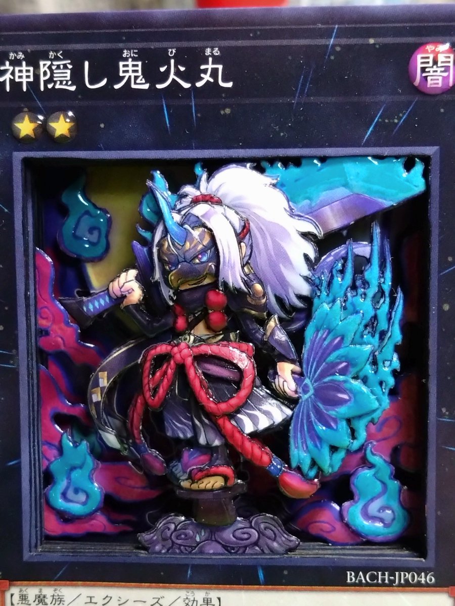 6 30 完成.。゚+.(・∀・)゚+.゚ 遊戯王より 神隠し鬼火丸 メンタルがやられててなかなか進められなかったけど完成させることが出来ました(*´ω`*) 炎の部分と月にレジンを使い、蓄光で若干光ります← 頭部と団扇がお気に入り! #シャドーボックス #遊戯王 23/06/05 20:08