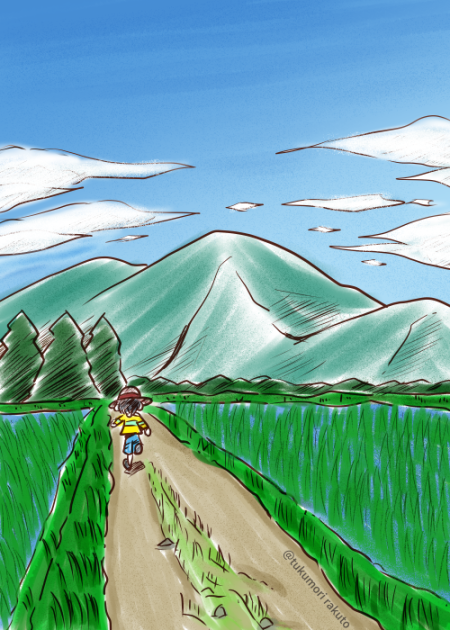 田んぼ道散歩する風景を描いてみました。 #風景画 #さんぽ #田舎道 #夏休み #帰省 #illustration #絵描きさんと繋がりたい #イラスト好きな人と繋がりたい #絵柄が好みって人にフォローされたい #夏の創作クラスターフォロー祭り