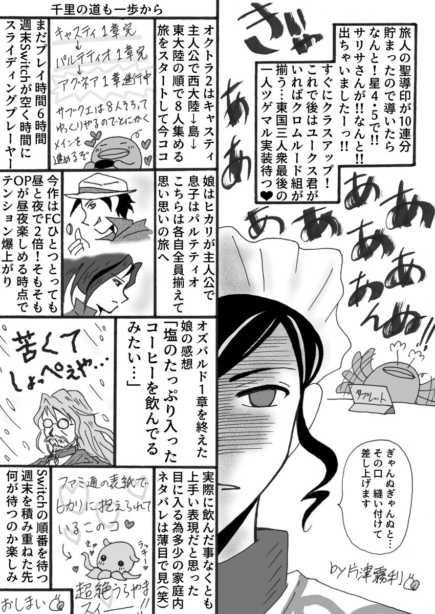 こちらはオクトラ関係です🐙こちらの他にpixivにサイトレ漫画投稿しました(固ツイ中です) 都市伝説・描けば出る!?オーゲンさんとEX踊り子ハンイット新規ご入団と、ここ以外で描いたテリオンとミロードも凸出来ました(最近日常雑記漫画の方が多い気が…) #今月描いた絵を晒そう