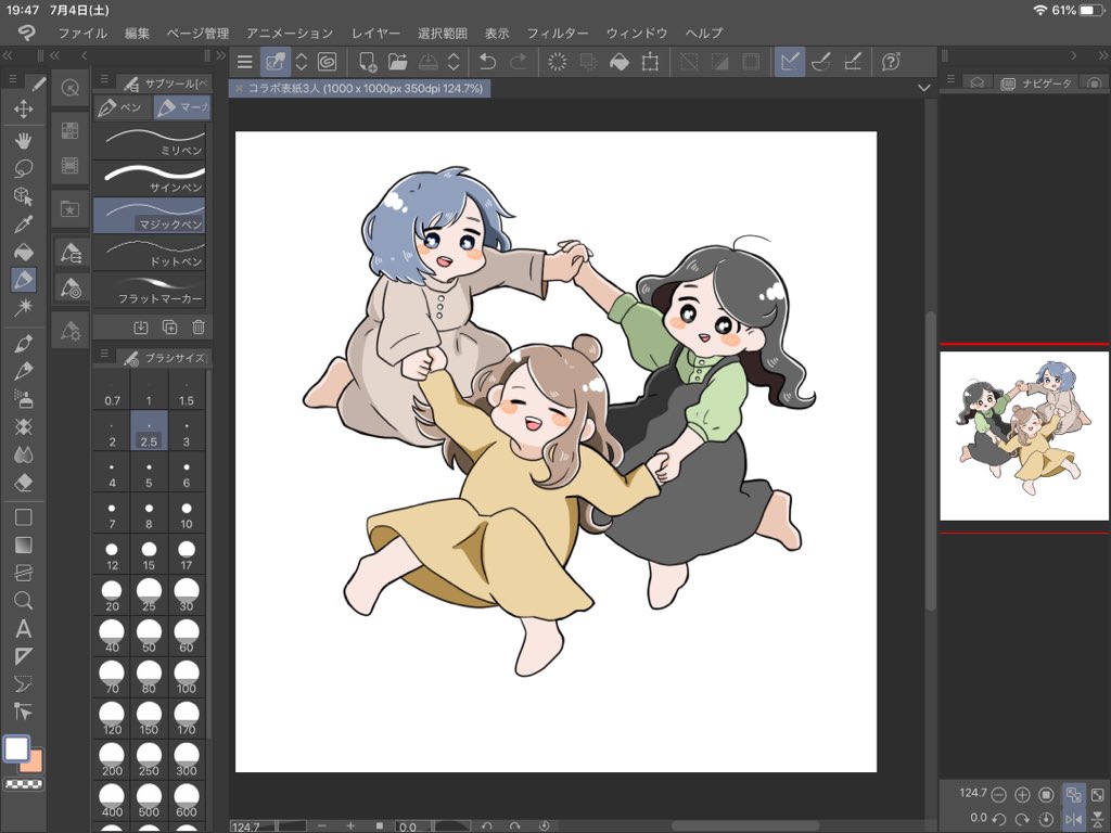 1 12 お二人の許可は取ってません(笑) なのにちゃっかり自分を真ん中に‥🤭‼️ コラボ投稿の表紙‥描いてみたよ👍 誰が誰か伝われば嬉しい 20/07/04 19:49