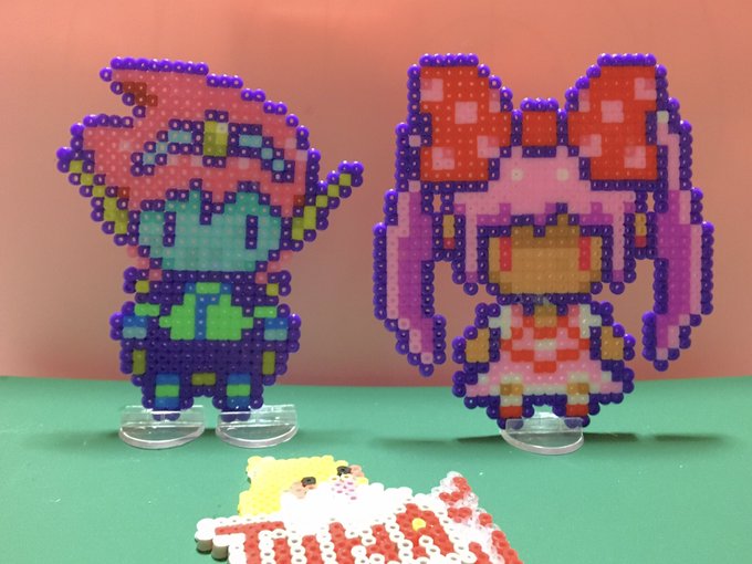 【OMORI】⑽ スイートハートとスペース彼氏❣️ どうぞ末永く爆発してくれ。 (彼女達の戦闘BGMはめちゃくちゃカッコイイから全人類聴いて欲しい。) #アイロンビーズ #OMORI #OMORIFANART
