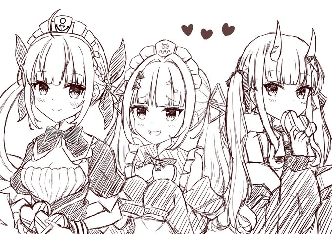 今と昔の卍組イラスト⚓️😈🌙 絵の上達を感じた(1枚目が今年描いた絵)