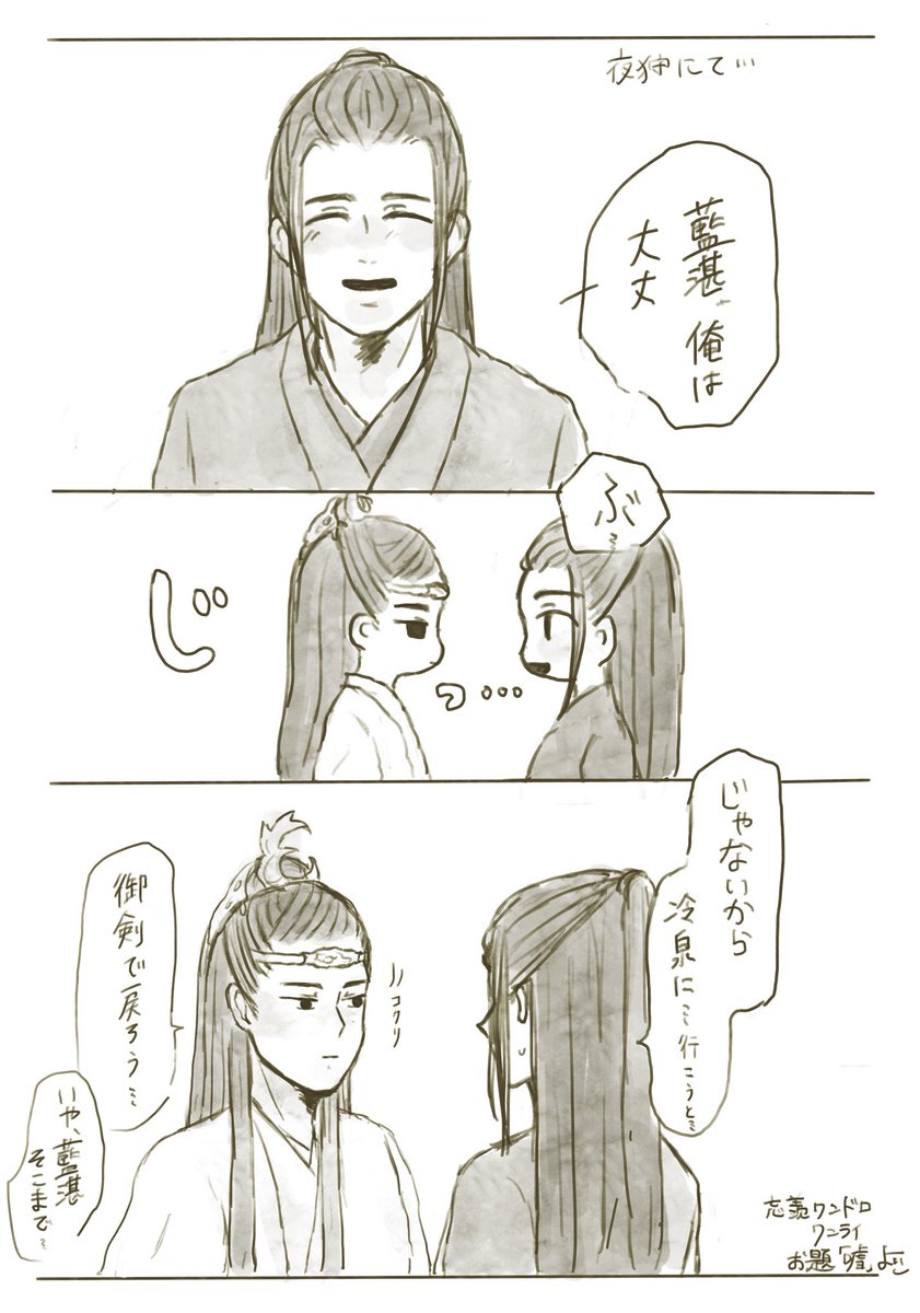 13 156 #忘羨ワンドロワンライ 夜中寒さに起きた魏嬰が朝起きたら藍湛どんな顔するかな〜と思いながら藍湛の寝床に潜り込む、そんな霜降り 21/10/23 23:26