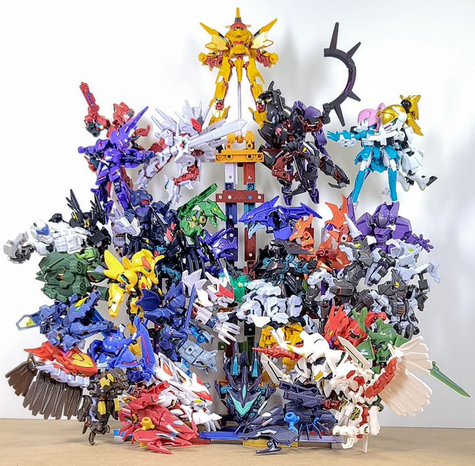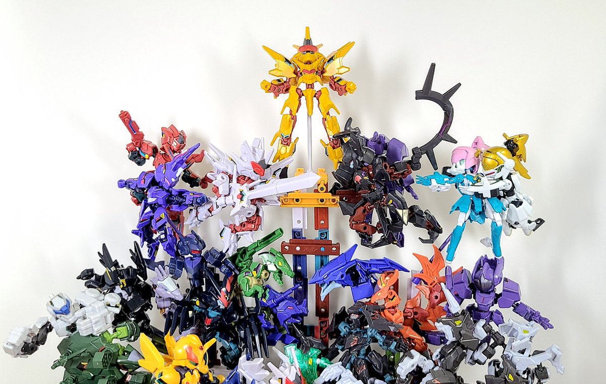 第1章完結記念に全員集合。 本当はすぐ作るつもりだったけど全キャラ組み立てるのに1週間かかってしまった。 良い子のみんなは面倒くさがったてパーツをゴチャ混ぜにしないでこまめに仕分けしておこう。 #アニマギア