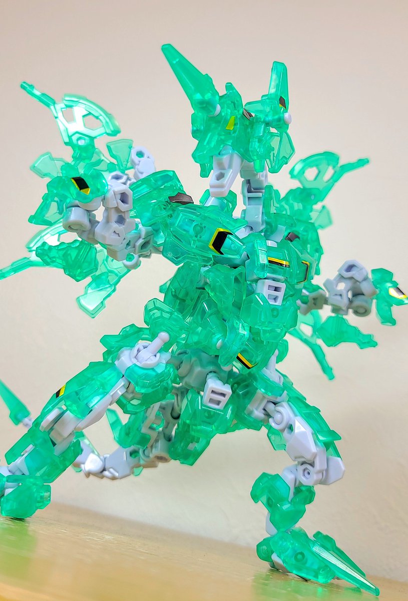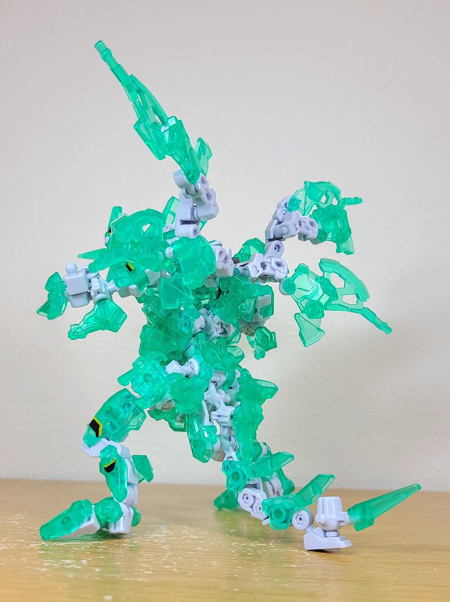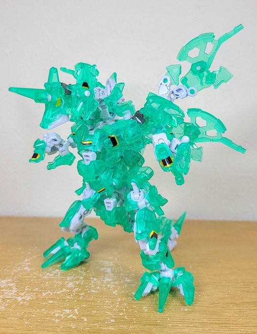 昨日コンテスト結果を眺めつつせっせと切り出してたクリアシュバルツフォース×4。 せっかくなのでシュバルツフォース縛りでドラゴン作った、待望のクリア素材に惚れ惚れ。 #アニマギア