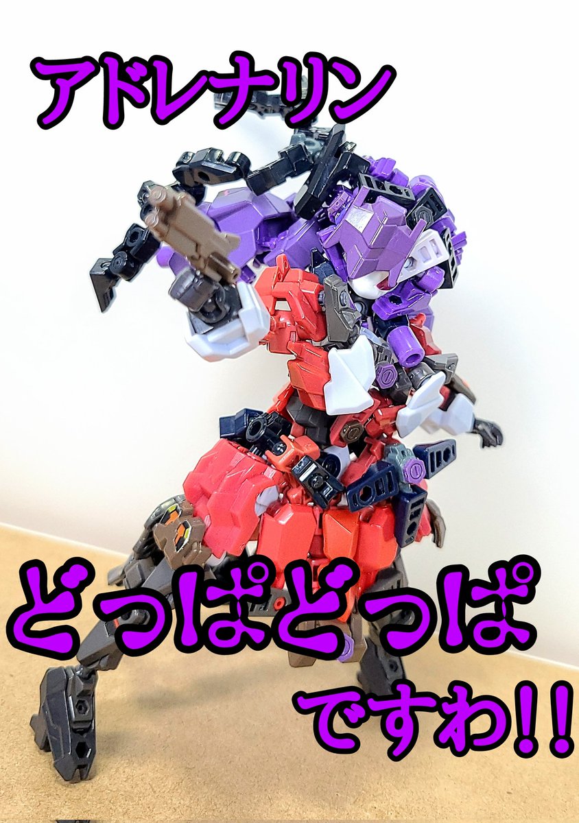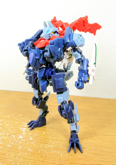 脚力、戦闘力を強化したヴォーパルカスタム、こだわりのデカ獣足。 左腕には肉を貫き骨を砕く痛撃・ゲッシバンカー。 #アニマギア
