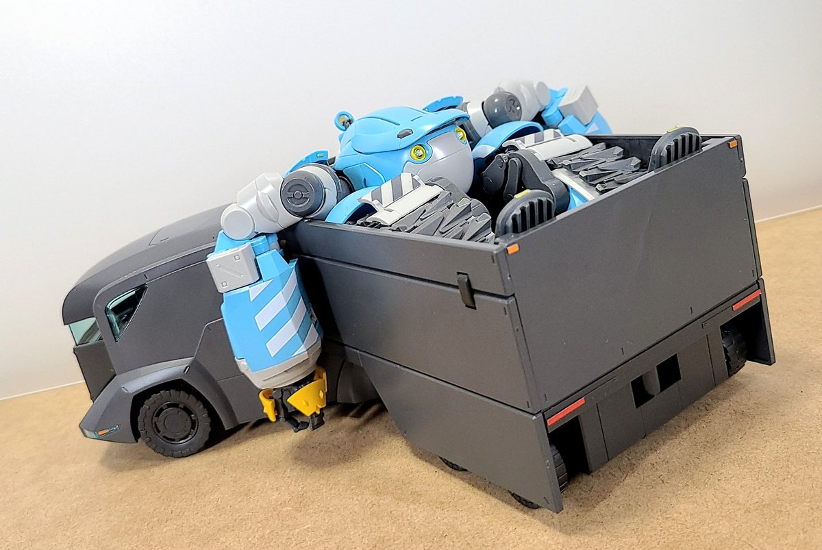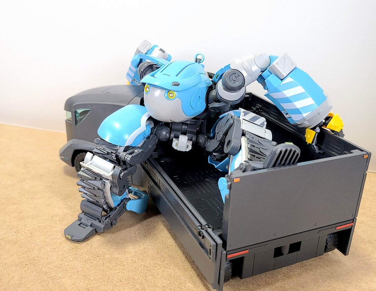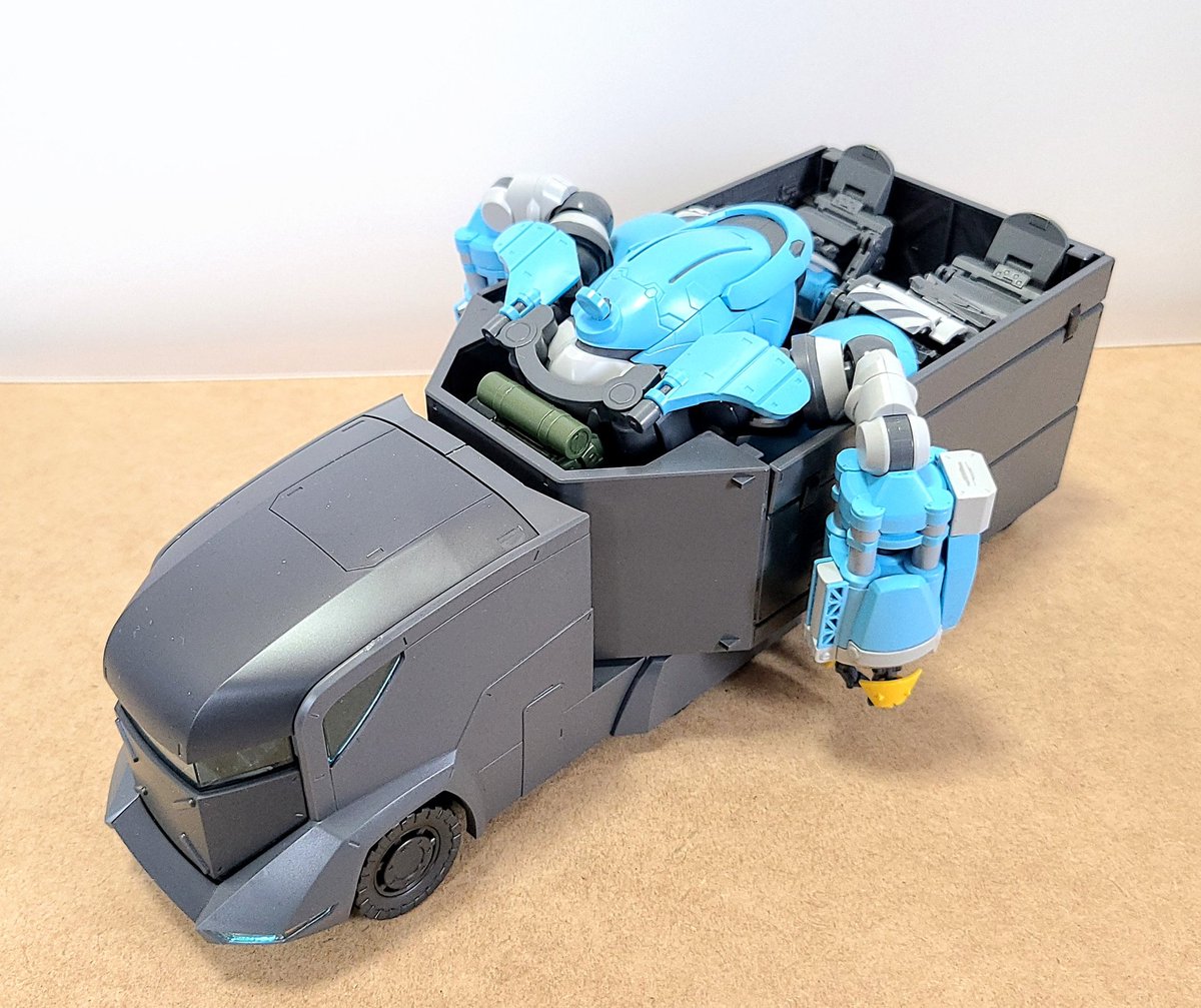 境界戦機のトラックこと特大型装甲特殊運搬車作った。 試しにビッグトニー乗せたら驚きのフィット感、絶妙にかったるそうな雰囲気がとても良い。