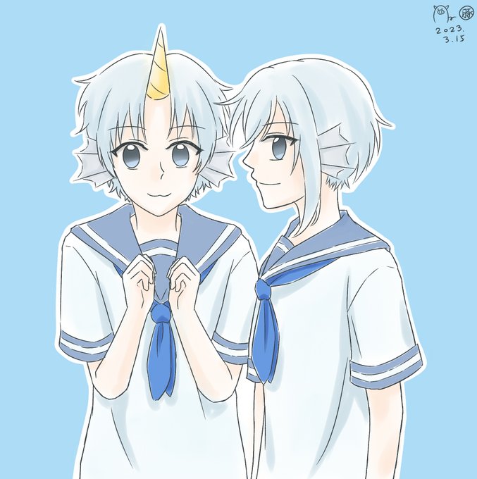 3 23 #賞鯨圖 #水鯨餃 還沒想到要怎麼玩瘦瘦跟胖胖水鯨餃 先畫成擬人(??????? 畫一畫發現🤔這兩隻好像可以組CP(修但幾壘 23/03/15 05:51