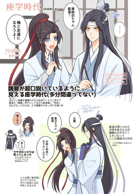 魔道祖師を初見で読んだよ感想〜1巻の座学時代編〜 入り切らなかった追加の座学時代。読み返しても魏嬰が藍湛を口説いてるように見えるやつ。ふたりともかわいい #MDZS #魔道祖師 #忘羨
