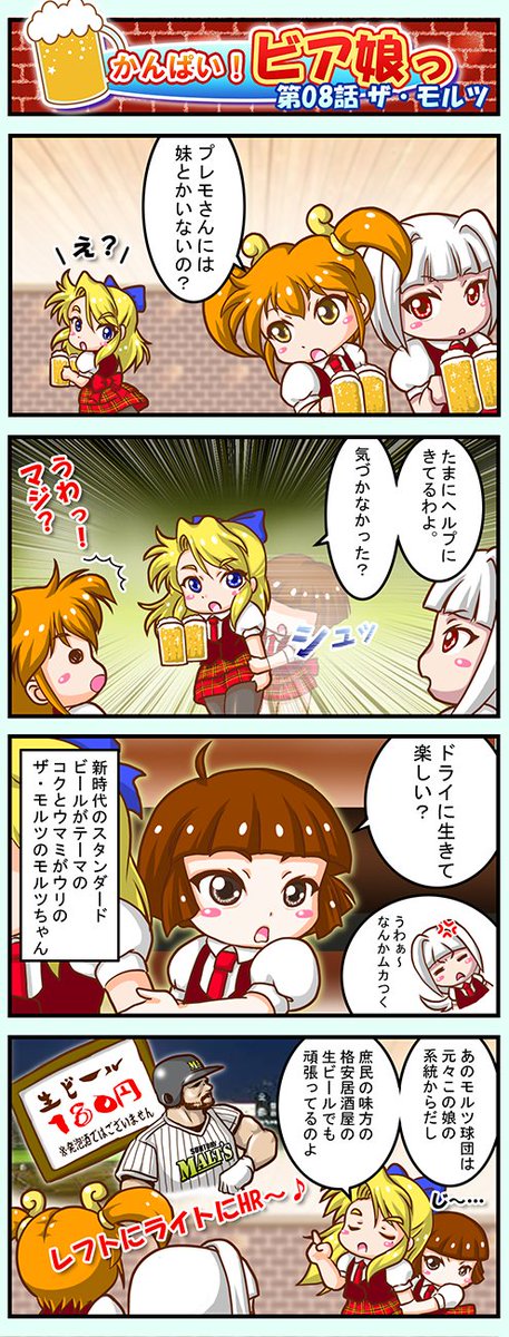かんぱい!ビア娘っ 第08話「ザ・モルツ」そーいやプロ野球開幕も近いよね。 #ザ・モルツ #4コマ漫画 #ビール #ビア娘っ