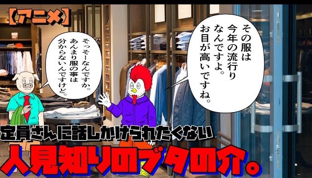 洋服屋さんの店員さんにすごく 絡まれます。 店員さんによく絡まれるヤツ。【アニメコント】【コントアニメ】【動物アニメ】 youtu.be/Qy6880g9Eaw #ショップ店員 #洋服屋 #ファッション #イラスト #アニメ動画 #あるある