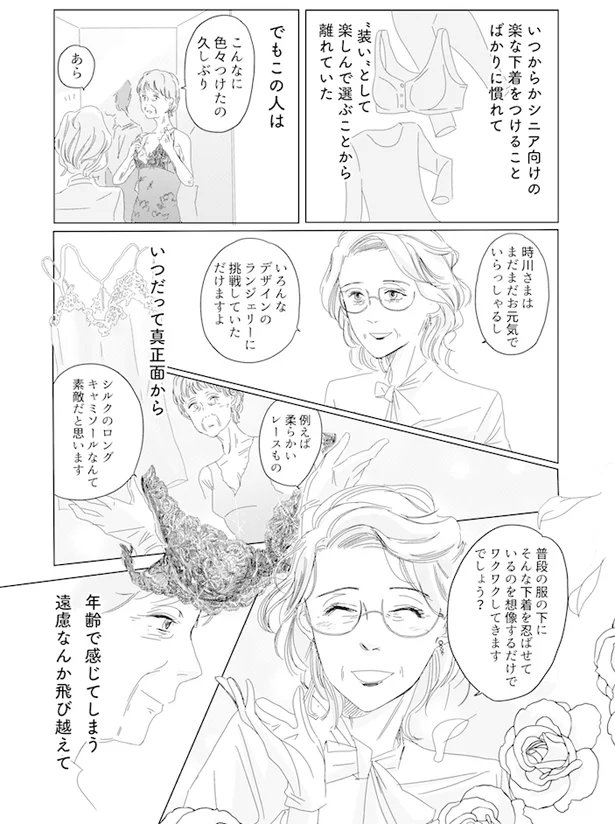レタスクラブさん連載「ランジェリー・ブルース」3話が昨日から3日連続で公開です 今回は昔着ていたドレスをもう一度着たい、という70代のお客様 今夜10時半ごろに続きが公開されます #ランジェリー・ブルース lettuceclub.net/news/article/1…
