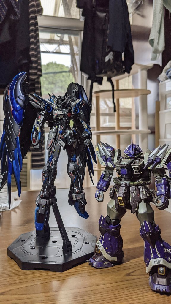 まだまだ作業するけど、ひとまず❗ ウィングガンダム ゼロ カスタム EWの メガミデバイス エクソシスト ウィドウ仕様 って感じにしてみたよ〜 #ガンプラ #ガンプラは自由だ #ガンプラの画像貼るとRTされると聞いて
