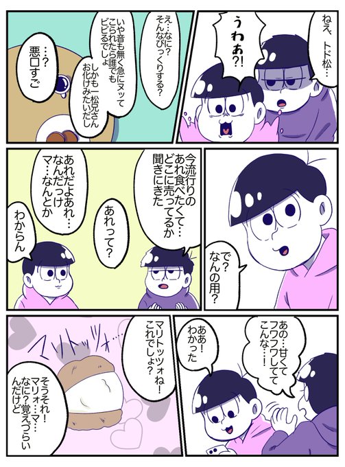 36 174 マシュマロお題から 「マリトッツォ言えない一松」 「出会い系アプリは嫌だけど出会いがあると聞いてピグパ始めるトド松」 21/10/19 20:33