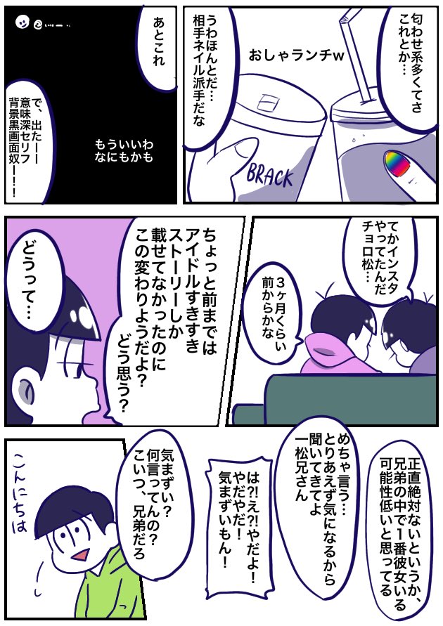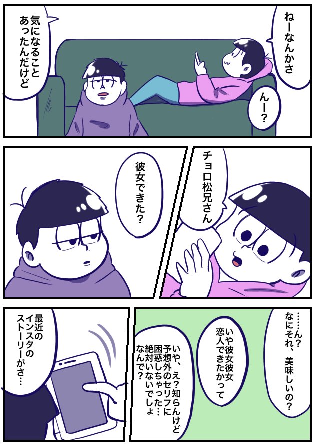 89 540 マシュマロリクエストから 「三密を避けてzoom飲みをする常識人三男」 「匂わせストーリーをあげるチョロ松」 リクエストありがとうござ…! 21/12/11 17:20