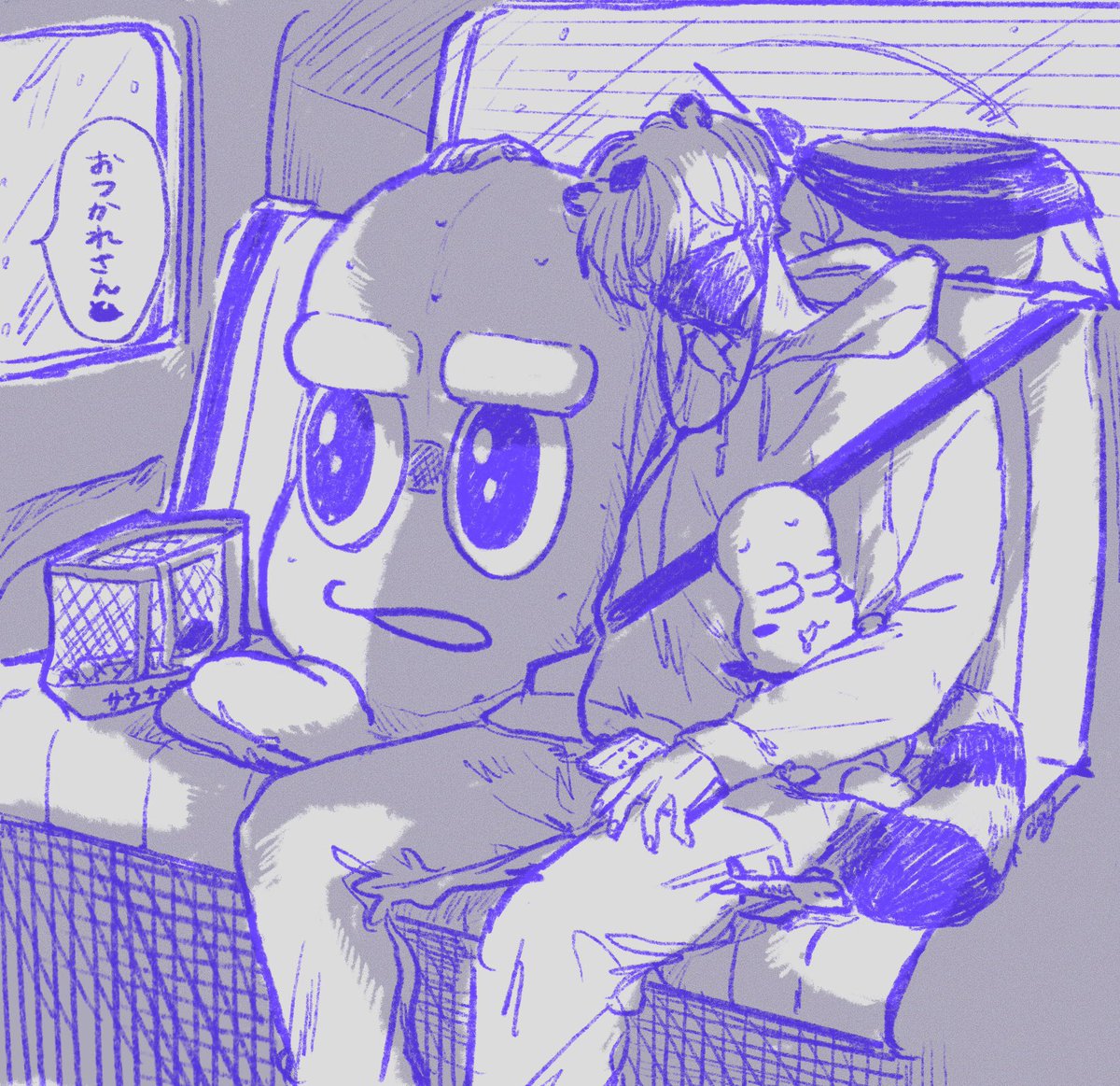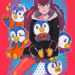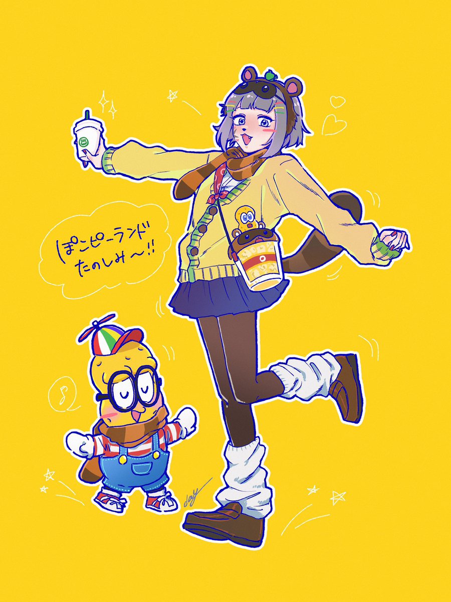 ぽこピーランドでジャージペンギンに囲まれるキクラゲさんがかわいかったのでFAを描きました🍔🐧💨🎪 #kkrg_001