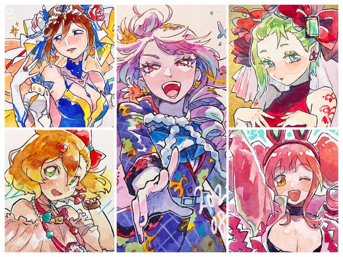 去年から水彩できゅれちゃんみんな描けました🌟それぞれ好きな衣装選んだヨ〜