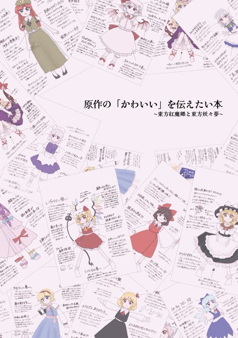 105 352 「原作の「かわいい」を伝えたい本~東方紅魔郷と東方妖々夢~」 A4/ 30p / full color 原作立ち絵の「可愛さ」「魅力」について語ったイラスト集です。 原作への愛を深めたい方は、是非お求めください。 ※サンプルはイメージです。 #C102 #C102お品書き 23/08/06 20:30
