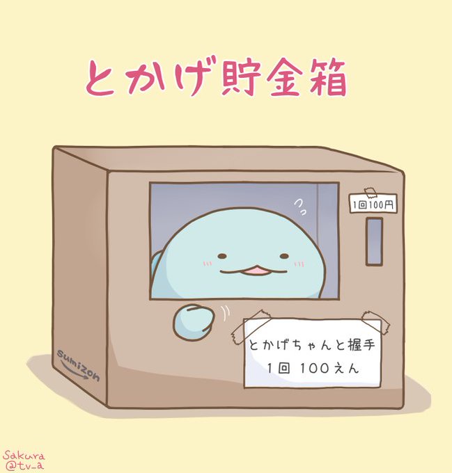 とかげちゃんがこういう貯金箱やってくれたらすぐお金が貯まる気がする!!(*゚▽゚*) #すみっコイラスト部