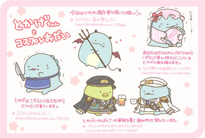 55 170 とかげちゃんとコスプレお題いろいろ! #すみっコぐらし 16/04/17 18:42