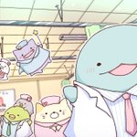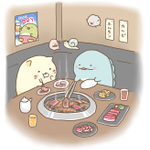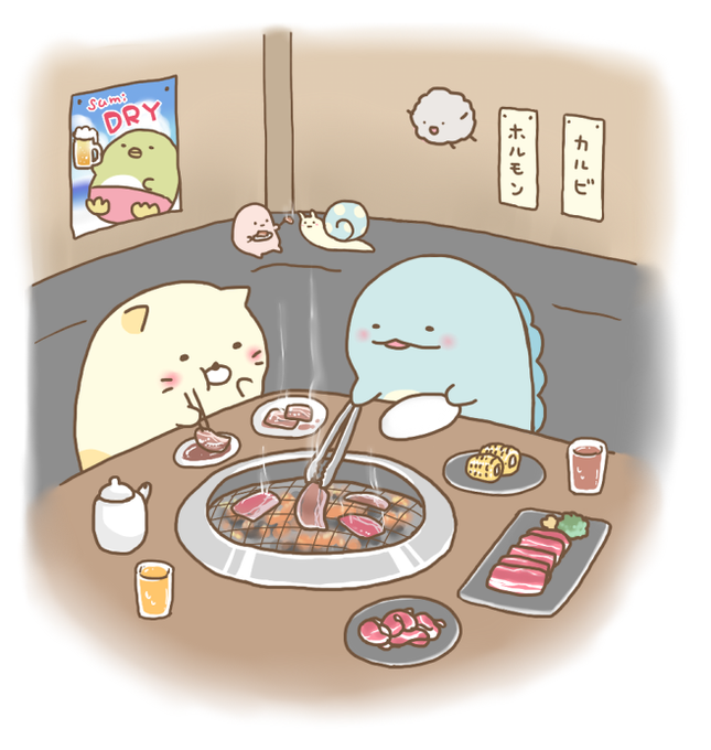 焼き肉食べてるとかげちゃんとねこ! #すみっコぐらし