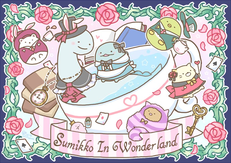 不思議の国のすみっコたちー!(´□`*) 1枚目はデジタル絵、2枚目はアナログ絵、3枚目はこのイラストのちょっとしたメイキングです! #すみっコぐらし