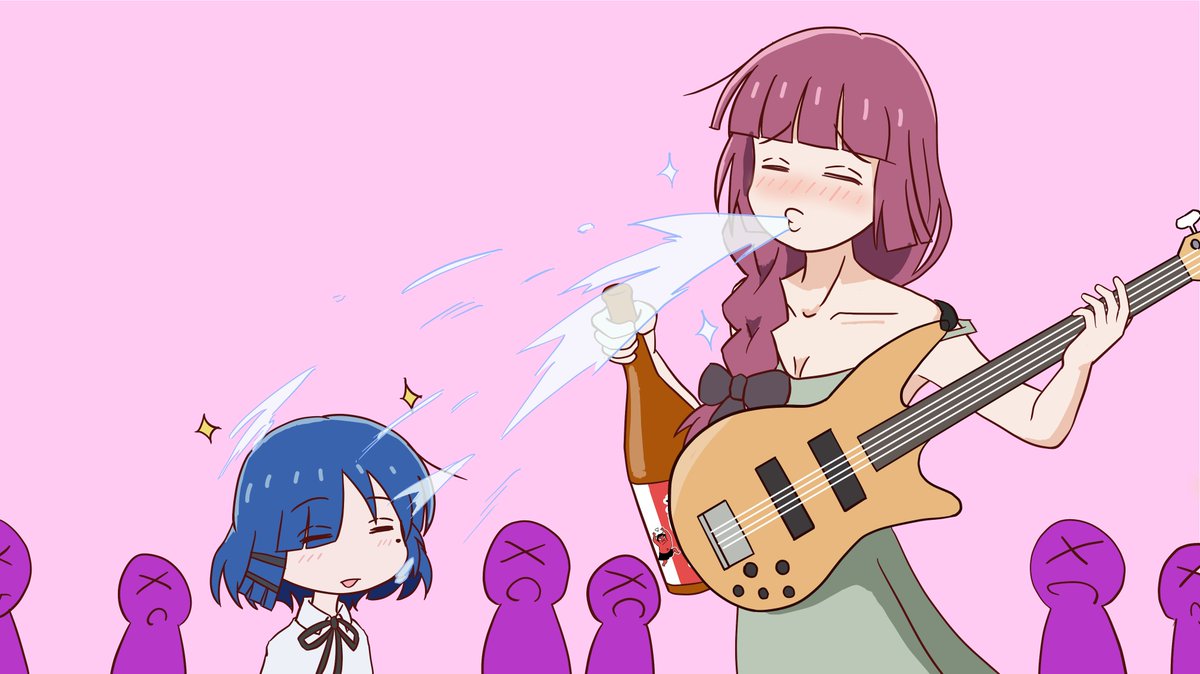rkgk@ライブ中に酒を吹きかけるベーシストと、それを浴びて幸せそうなJK #ぼっち・ざ・ろっく #廣井きくり #リョウ先輩 #酒 ↓参考ネタ twitter.com/twit_kon/statu…