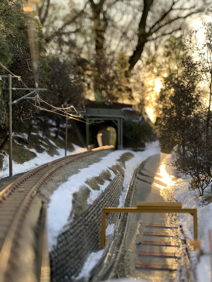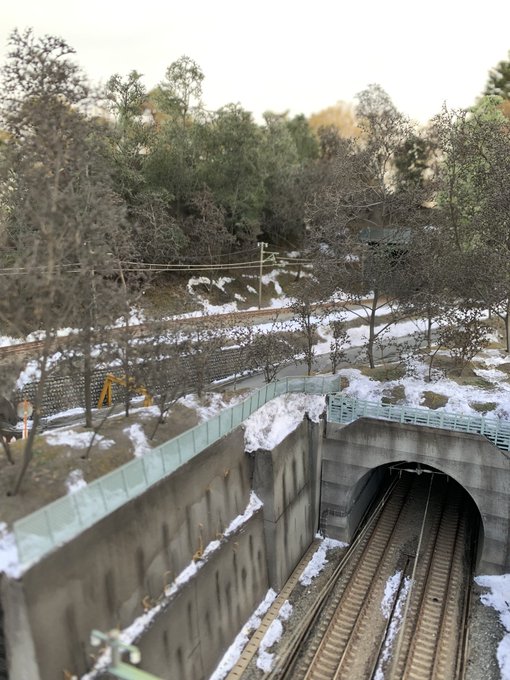#今年作った模型晒そうぜ 1発目は… 残雪の表現をテーマにした モジュールジオラマ 『春近し雪残る鉄路』 (だったかな💦) 冬の情景初挑戦でした。 T-TRAK規格 仙石線と東北本線が交差する景色を基に製作しました。