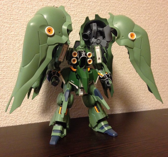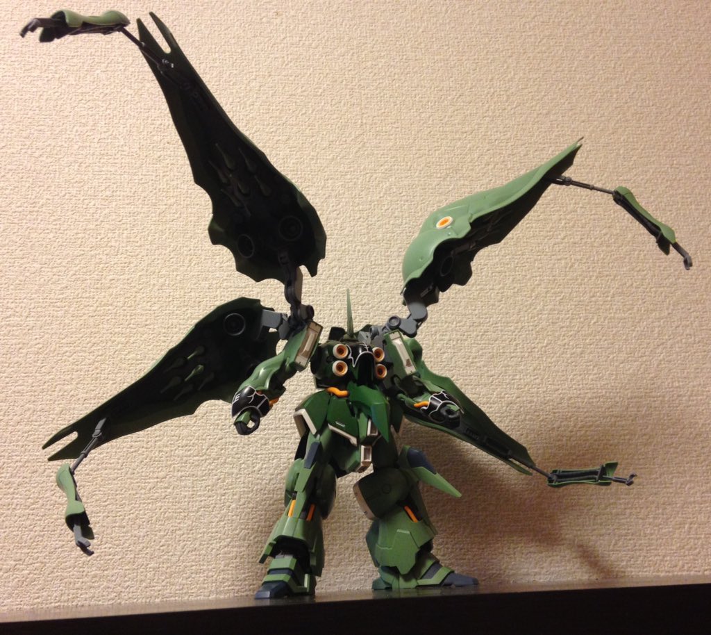 #ガンプラ クシャトリヤできたぞおおお!!! 一番好きなモビルスーツだあー!!!! かっこいい!!!!でかい!!!羽すごい!!!ピーマン!!!! フャンネル24個疲れた!!!