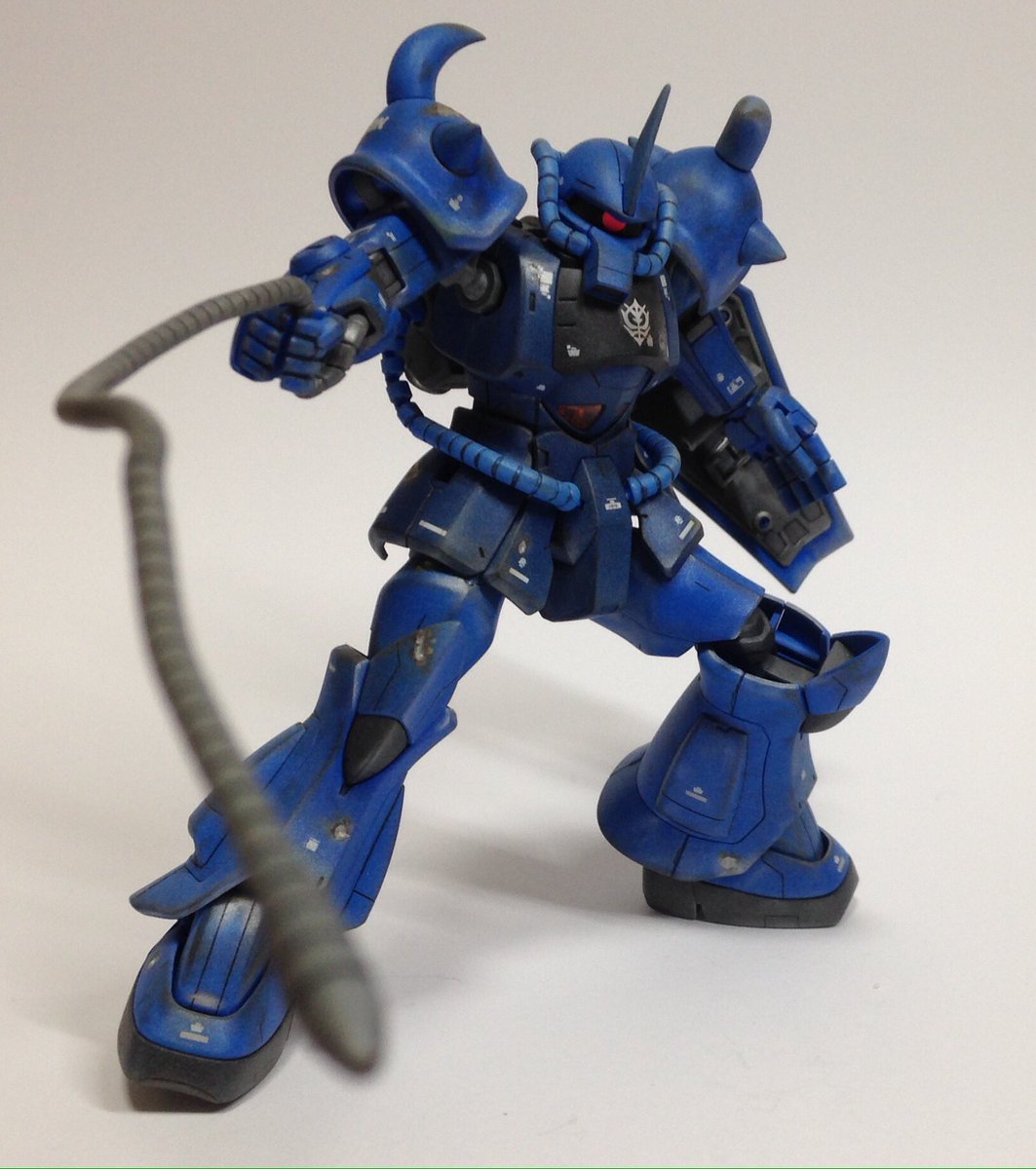 #ガンプラ グフ完成しました!!!! 満足!!!! ディテールアップ、ダメージ加工、デカール、ウェザリングは初めてでしてが、クッソカッコ良くできたのでは 今までで最高の出来!! ぐふふふふ